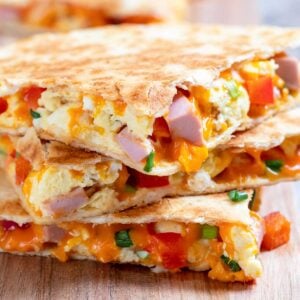 The best breakfast quesadilla stuffed with ham, cheese, and eggs makes the perfect dinner idea!
