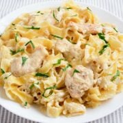 My family has become a huge fan of my cottage cheese Alfredo sauce, and while it’s already healthy and satisfying, adding chicken turns it into an epic meal that my teens keep asking for on repeat.