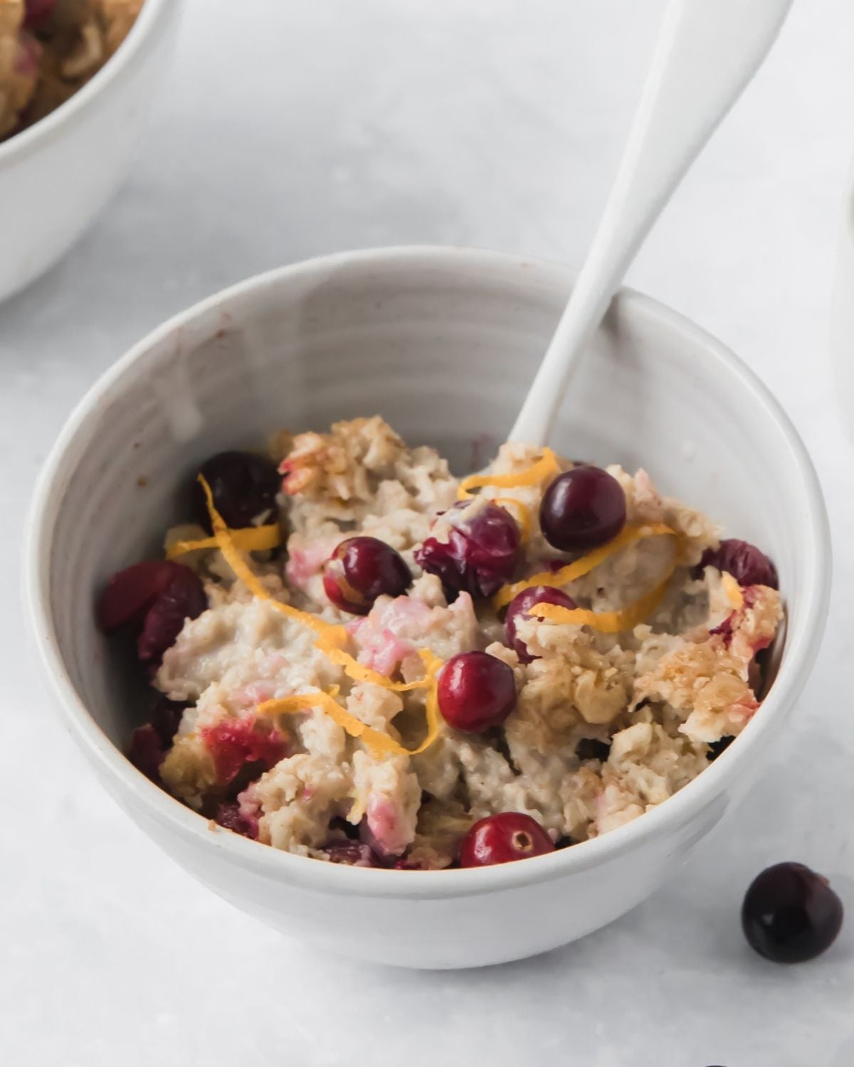 It has all the health benefits of oatmeal with a bread pudding-like texture and a burst of tart goodness from the cranberries. Plus, this recipe doesn't need a whole lot of added sugar, just a touch of honey is enough!