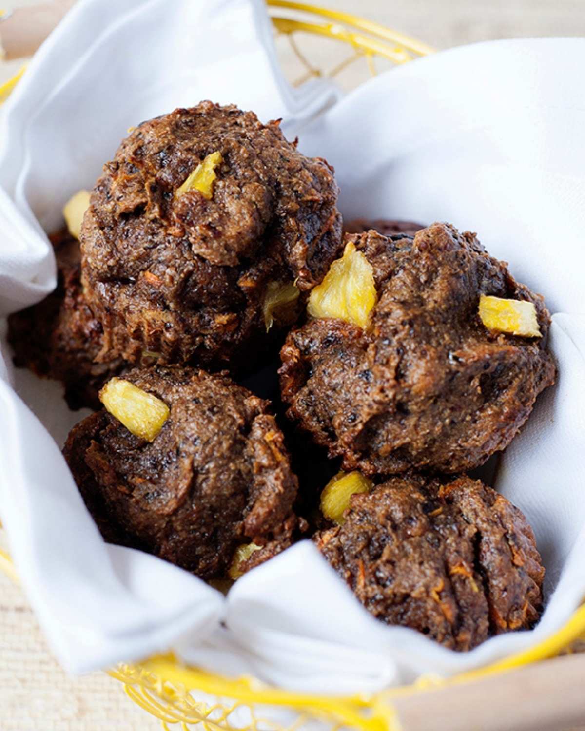 Great muffins! Highly recommend! Hearty, delicious, healthy, and satisfying. I made a few modifications. Due to a coconut allergy, I used 1 cup of almond flour instead of coconut flour, reduced to two eggs (per substitution recommendations online), and used butter instead of coconut oil. I added in cranberry instead of pineapple to make the muffins relevant for the season.
