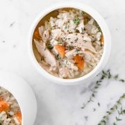 While this recipe calls for cooking the chicken from scratch, below you’ll find my tips on making this soup with a shredded rotisserie chicken and other useful swaps.