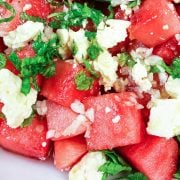 Take a break from cooking side dishes with this delicious Mint Watermelon Salad. It comes together fast and it’s a summer favorite.