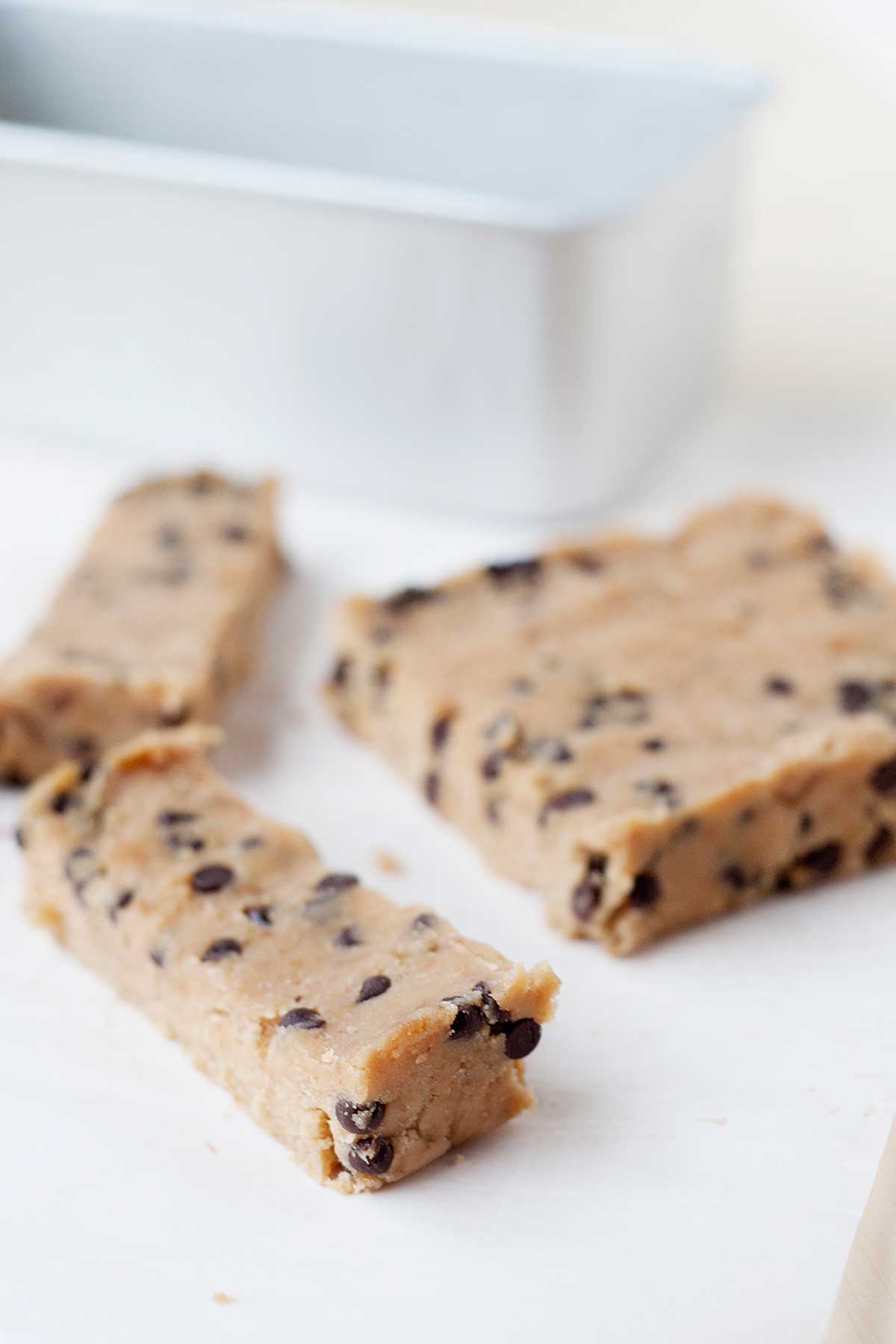 Transfer the mixture to the loaf pan and press it with your hand to spread it evenly. The blondies will be firm enough after 1-2 hours in the fridge.